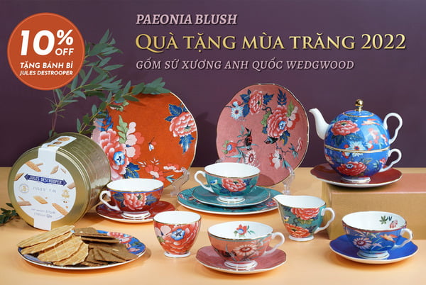 Khéo léo trong câu chuyện về sự phú quý và sum vầy, được truyền tải trọn vẹn và tinh tế thông qua các màu sắc đại diện cho may mắn như Đỏ, Vàng, Hồng…cùng hình tượng chim Hỷ tước và hoa Mẫu đơn trong văn hóa phương Đông trên nền chất liệu sứ xương cao cấp, BST Wedgwood Paeonia Blush gói gọn thành ý, thay lời tri ân ý nghĩa dịp Trung thu 2022 này từ bạn đến những người thân yêu.