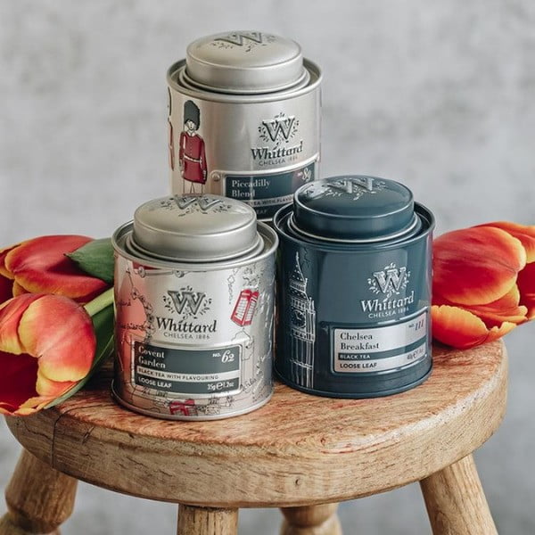 Đa dạng từ Earl Grey, Darjeeling, English Breakfast… với thiết kế hộp trà đẹp mắt, Whittard of Chelsea là thương hiệu trà chiều Anh quốc không thể bỏ lỡ trong giỏ quà Tết Nhâm Dần 2022.